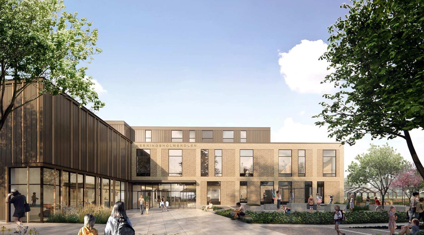 Vi er superglade for at kunne fortælle, at vi i samarbejde med GPP Arkitekter, AFRY, byMUNCH og Rum og Adfærd har vundet konkurrencen om Herningsholmskolen for Herning Kommune.