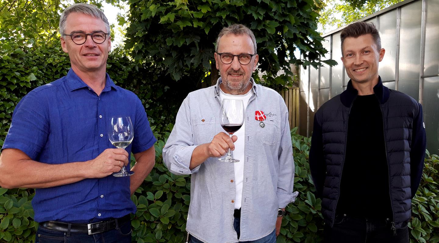 Pga. corona restriktioner kunne alle medarbejdere hos c.c. contractor først samles nu og overrække Jens' medaljen. Jens Madsen er her flankeret af adm. direktør Jørn From og projektchef Claus Minds.