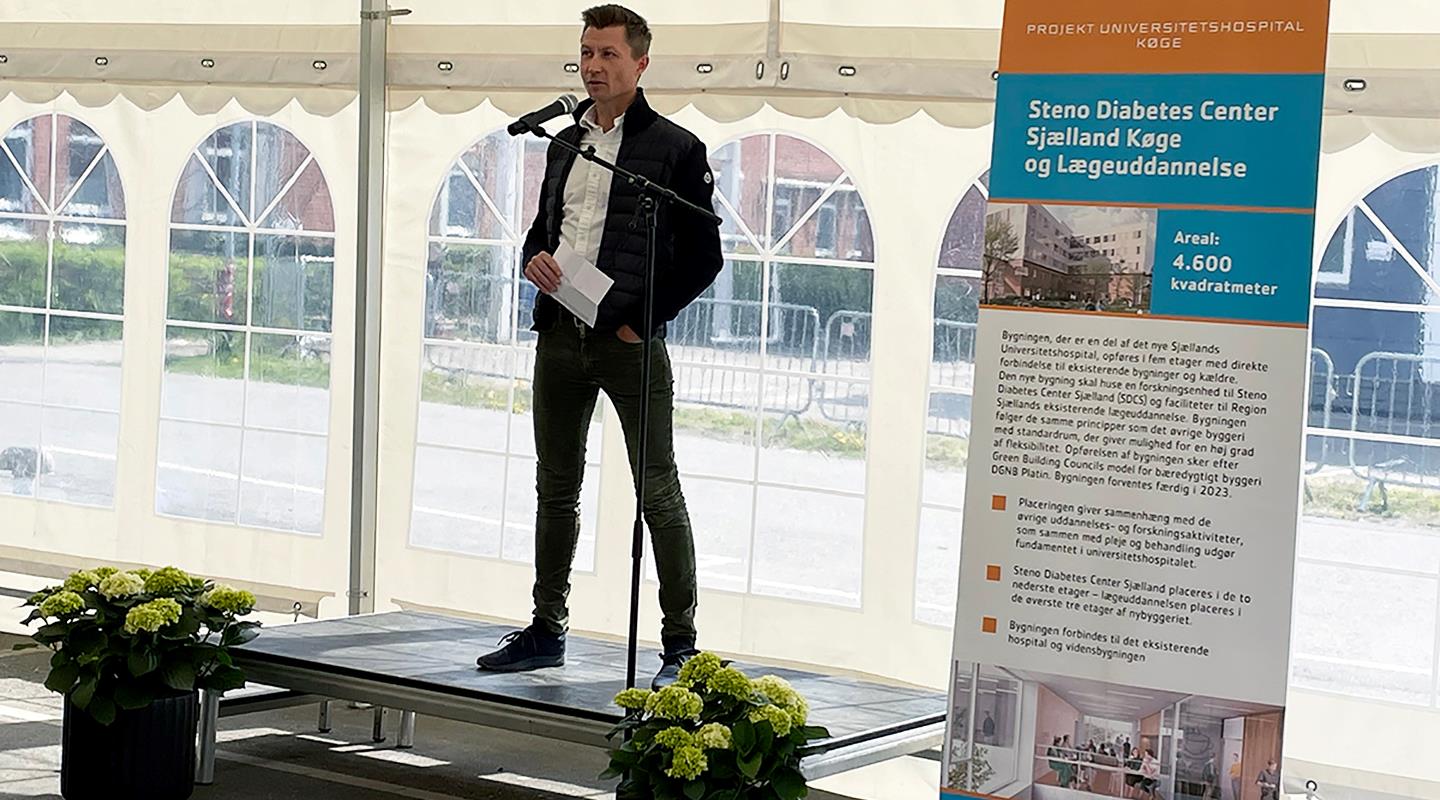 Onsdag den 4. maj blev det første spadestik taget til Region Sjællands nye Videnshus, der skal ligge på Sjællands Universitetshospital i Køge.