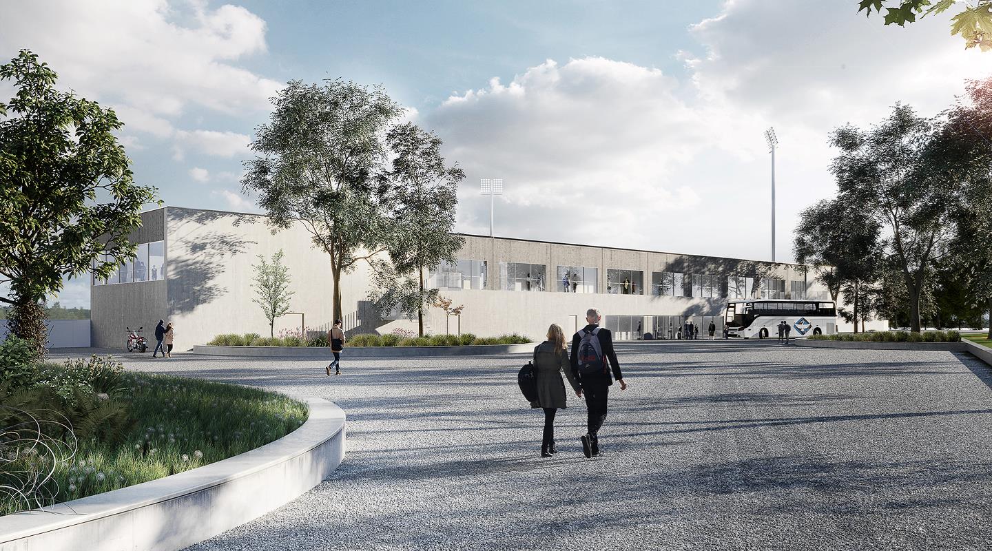 c.c contractor har tidligere opført ny fodboldbane med tilhørende siddetribune og nu suppleres den med en tilstødende bygning, der som en vigtig brik slutter stadionbyggeriet mod vest og danner ryg ud til et nyt ankomstareal for Køge Stadion. Den nye bygning etableres som en funktionel kobling mellem pladsen og den nye tribune, og vil med denne placering danne grundlaget for et skræddersyet hus med nye klub- og omklædningsfaciliteter.